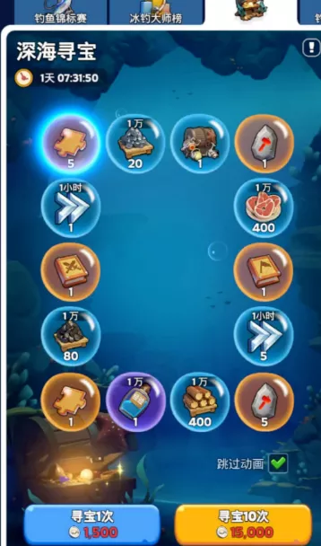 3,深海宝藏:要是消耗藏宝海图,就能进入宝藏冰钓,在这儿更轻松钓到稀有鱼类,还能找到冰海宝箱。
