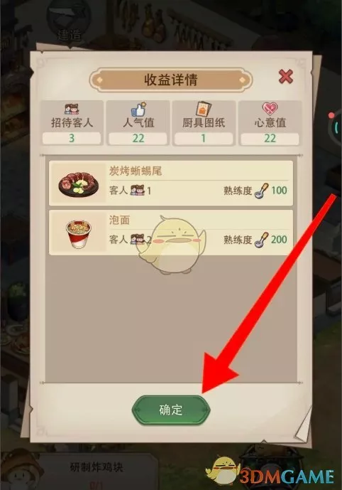 4、结尾我们点击确定完成领取后,即可获取餐厅带来的收益奖励。