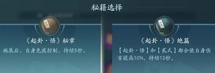 PVE无脑选取绝篇即可,但是不建议PVE带起卦技能,PVP带秘章免控。