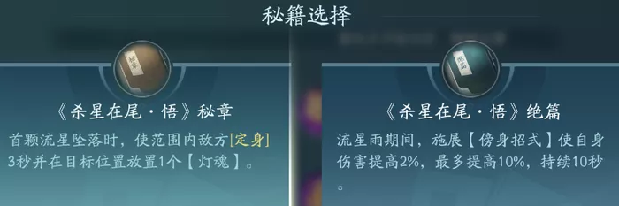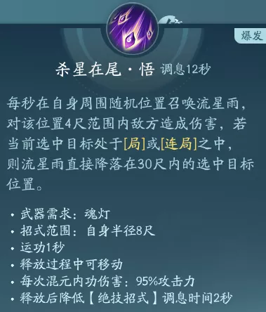 爆发技能,伤害很高,建议pve玩家选取此技能。PVP实在要带可以点秘章补控制,PVE点绝篇。
