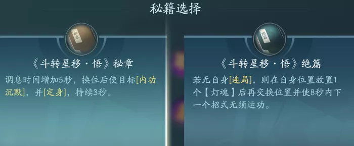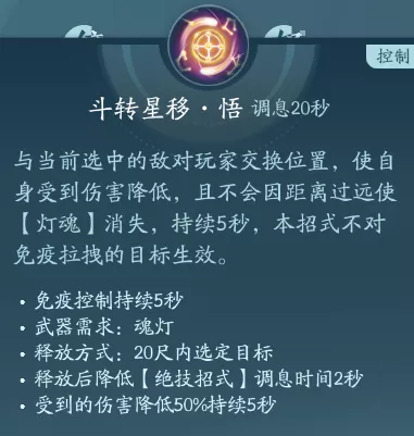 移动端衍天唯一的减伤技能,这个技能仅PVP会用,斗转星移秘章的封内可以被驱散,PVP按情况点秘籍。