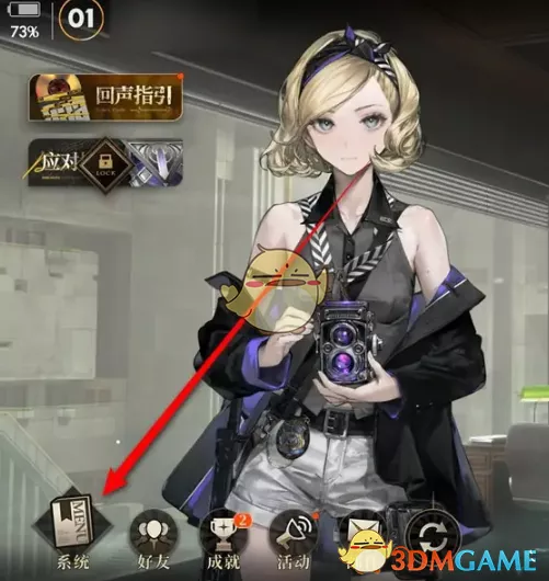 1、进入到异象回声游戏主界面,在左下角的位置点击系统图标。