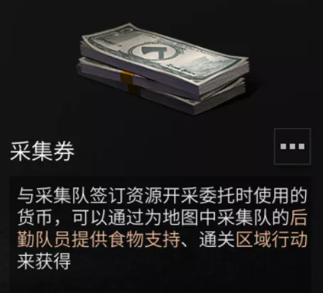 要想下达开采订单,就要利用采集券,采集券可行通过区域行动,也可行通过食物捐献,向采集队的后勤队员兑换采集券。
