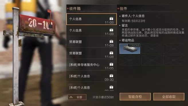 由于鹰小队要去执行更重要的任务,据点战勋将转换为采集券,通过邮箱发放给幸存者请幸存者们注意查收噢!