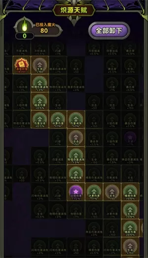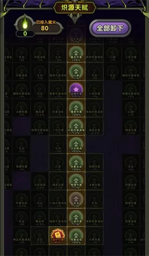五百分比攻击宝石,四能量一冷却,保证50%左右冷却,小丑满星。节点选追逐、遇强、反朴、斗志、百步、谨慎,遇强打红魔和兽潮比较重要,推荐优先点到8级,其他的4级以上再拉8级和更高。(个人通关节点等级按顺序是868433)