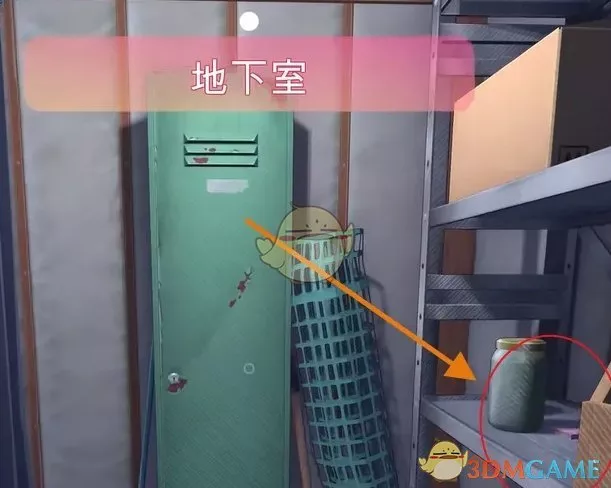 2、跟随指引前往地下室这里,然后看到货架上的道具;