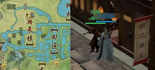 扬州再来镇如图位置 蓝色点取得道具【苜蓿草】 绿色点触发奇遇