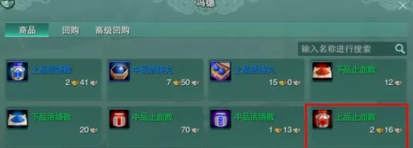 2、去再来镇药店找【冯德】买【上品止血散】回去对话【荀鸢】;