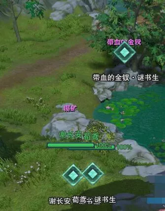 1、触发后直接查看地上【带血的金钗】而后在西南方向的树下找到npc【谢长安】;