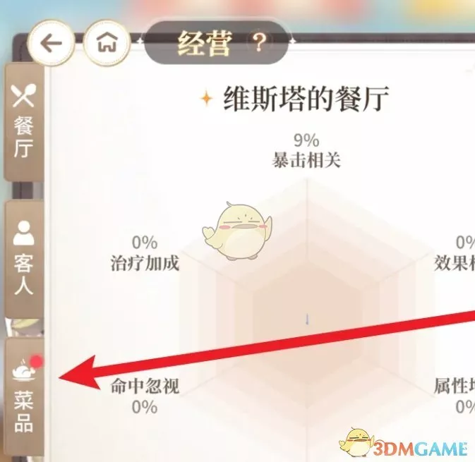 2、而后在餐厅中,点击左侧的菜品玩法前往;