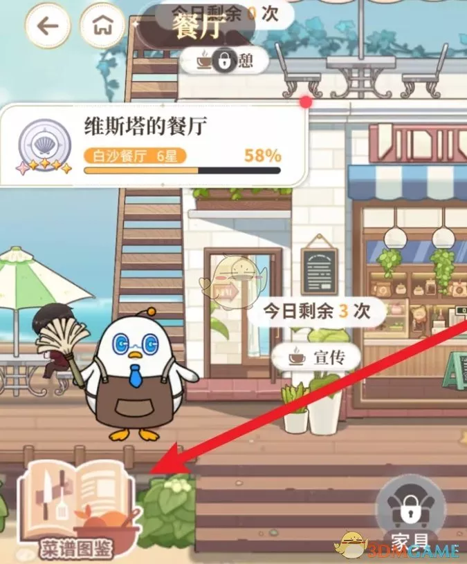1、首先我们前往餐厅,找到左侧的菜谱图鉴前往;