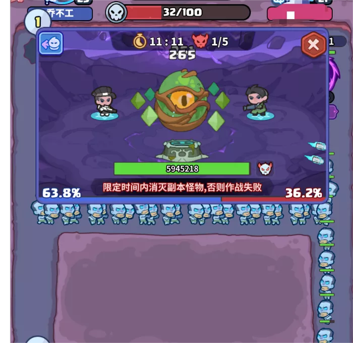 对于一般玩家,困难局第10波的boss,起码要有1个紫色英雄,过起来才不会费劲。而卡白色英雄的玩法的代价是不升“强化几率”,第10波召唤出紫色英雄的几率不高,会把压力都堆给友军,一旦友军运气不佳,极有可能会漏掉我方boss,往往这时我方又用领主追着boss打,不懂得放,使boss晕在那里挨时间,倒计时结束导致战局失利。