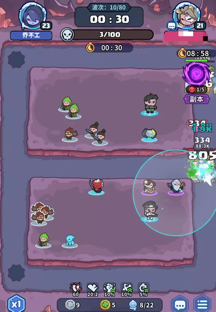 有巨佬开发出来的玩法:第6波前不升“几率强化”,直接召唤大批白色英雄: