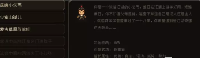 《大江湖之苍龙与白鸟》出身选择有哪些,详细攻略如下: