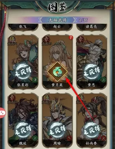 3、在武将的图鉴页面,点击等待解锁的图鉴;