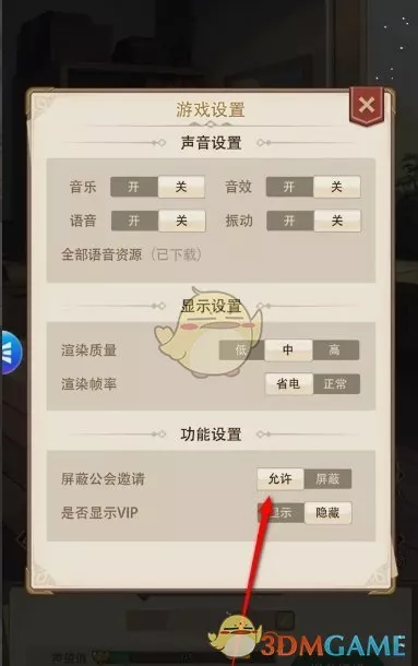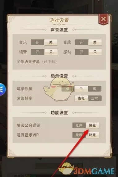 3、在游戏设置页面,即可看到屏蔽公会设置选项;