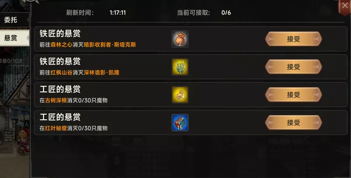除了在战斗过程中不断推进主线任务之外,如果旅行者已经具备了一定实力,那我推荐每天到城镇中的布告栏看看,或许正好有你需要的材料哦~在布告栏允许接取城镇中居民派发的委托和悬赏任务;委托任务完成后允许得到大量金币;悬赏任务完成后允许得到珍贵的材料,旅行者允许源于自己的需求接取任务。这里要提醒各位旅行者~日常任务的奖励和旅行者当前的主线任务挑战进度关联,解锁的地图越多,可接取的日常任务也会越多哦。