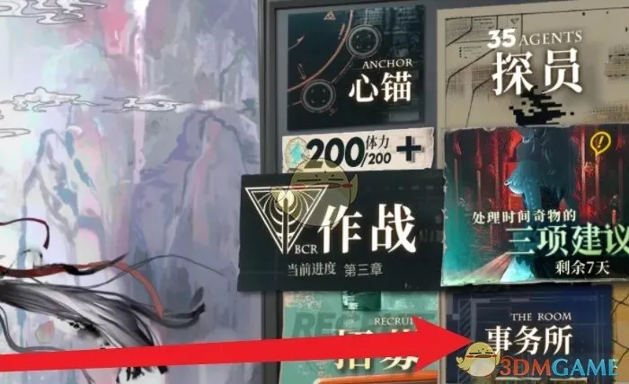 1、首先在游戏主页,点击右侧的事务所前往详情页;