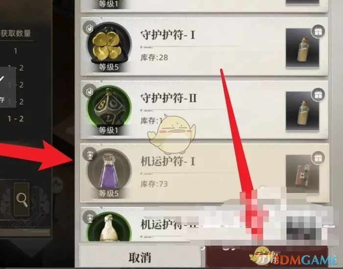 3、在库存中,点击需要分解的护符-右下角分解按钮;
