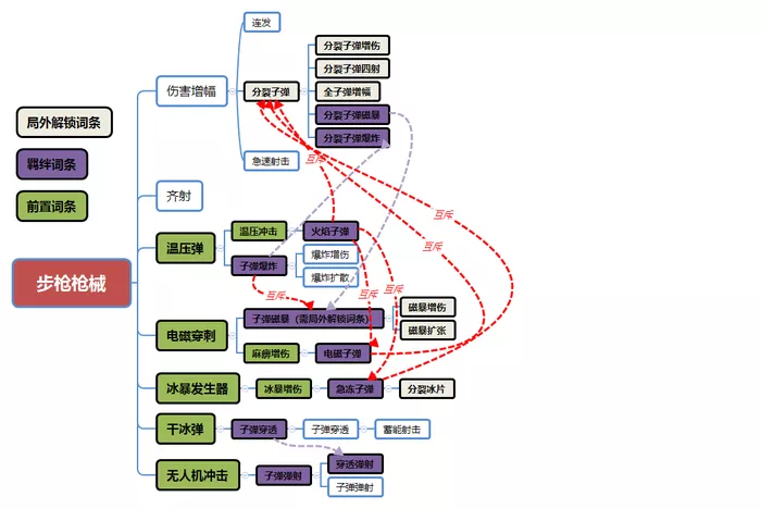 分裂子弹、分裂子弹增伤、分裂子弹四射、全子弹增幅、子弹磁暴、磁暴增伤、磁暴扩张、分裂冰片。都是须要局外解锁词条的。