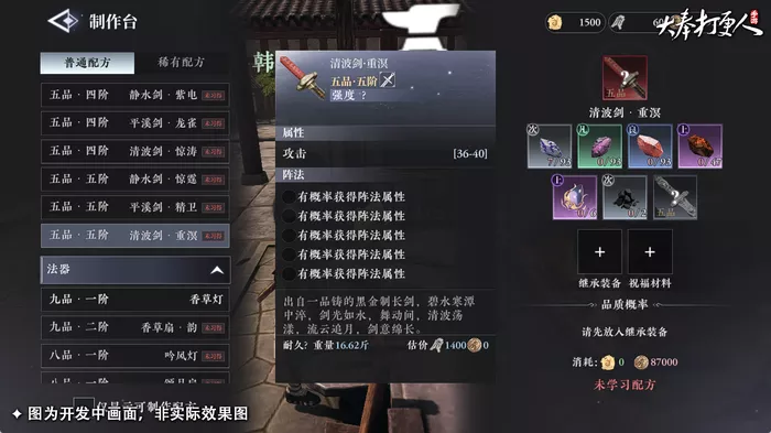 3、众所周知,传说中的武器并非轻松可得,其品质和掉落概率各不一样。虽然锻造过程有可能打造出神兵利器,但装备品质越高,成功率往往越低。庆幸的是,锻造失败并不意味着武器损毁,只是未能增强至更高品质。