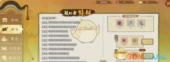 2、永久月卡:月卡25元,永久月卡68元,购买后每日可领取50桃花石及其他道具,实用性强。