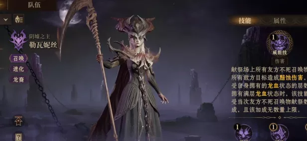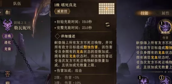 阴墟之主属于战斗技能,一开始时间为7秒,后期完整的时间为12秒。会将生命值最低的地方直接当成目标,能够给范围内的敌人造成200%以上的伤害。并且还会在目标周围去召唤死尸,在15秒内都会有效果,这个技能就会继续追加200%的伤害。