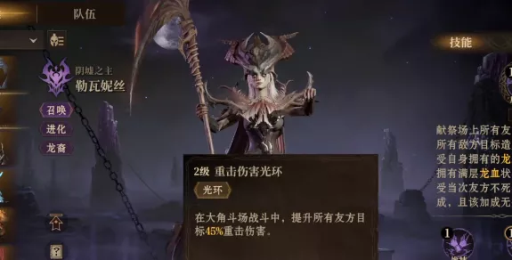 定位于传说级别的召唤英雄,一个队长技能就能够有效增强所有有方目标45%的伤害,被动技能龙神血脉能够减少自身30%的伤害。如果场上有任意一个目标死亡,那么自己就能够得到龙血状态,并且这一个状态在持续期间没有办法移除。能够获得1.5%的重击伤害。