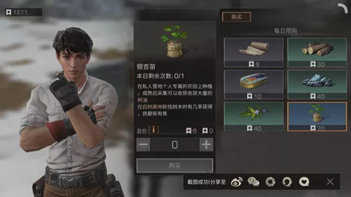 2、庄园种植植物【银杏苗】,等植物成熟,直接采集下来,就允许拿到树油了,材料允许去商店购买。