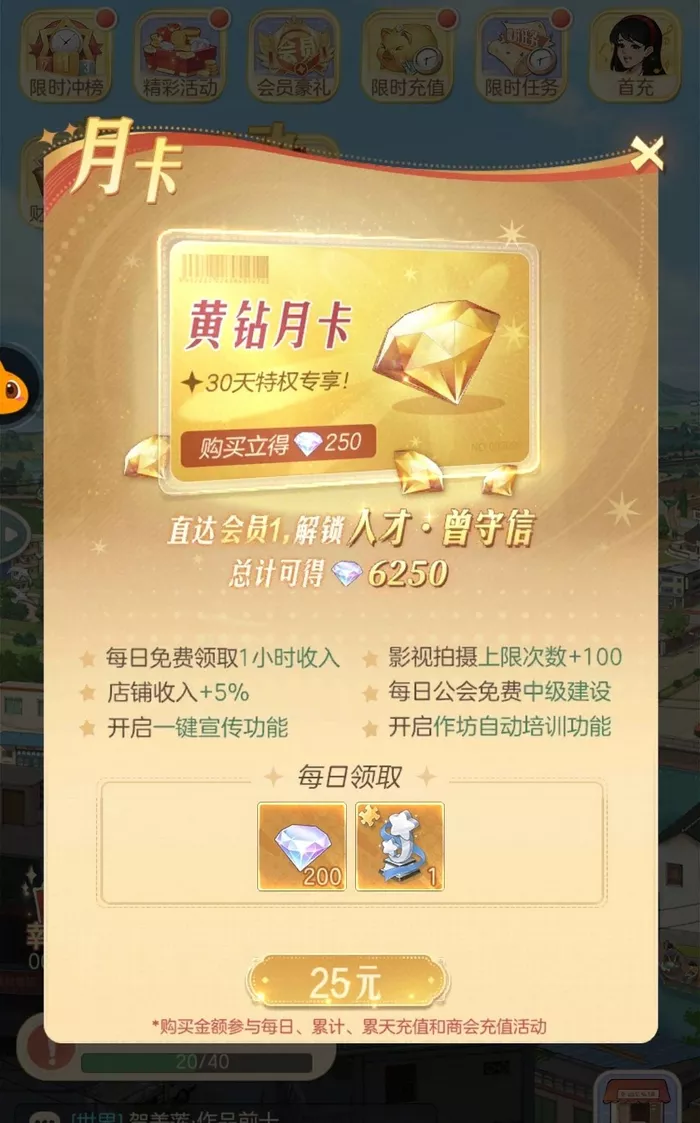 ②月卡可以打开一键宣传功能和作坊自动培训功能;
