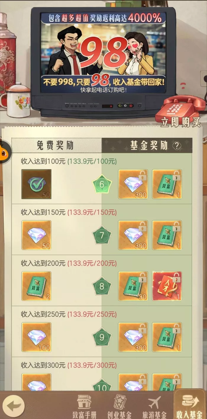 第三天基本了解游戏规则后,除了必买的基金活动外,推荐在第三天会触发的推送礼包-【旅游礼包】,这个礼包属于必买项。旅游礼包可以获取【火车票】进行旅游,是提高声望和取得艺人的重要途径之一。由于火车票在其他地方产出较少,建议店长们在每次推送礼包更新时优先购买旅游礼包。