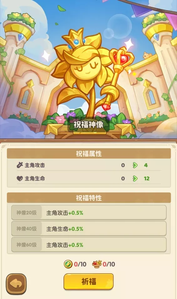 【祝福神像】等级每升20级,即可得到相应的【祝福特性】,为主角给予【属性加成】。