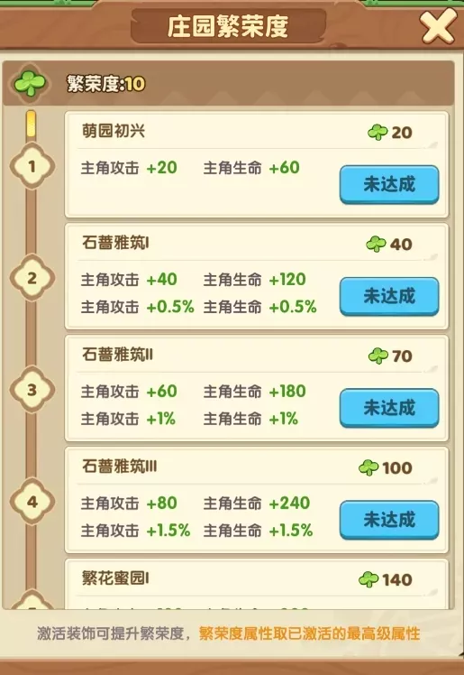 得到新的装饰,不仅能增加庄园【繁荣度】,还能给予【属性加成】。