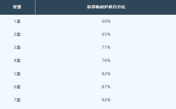 效果:对目标造成恢复效果时,目标会额外获取等于攻击力60%的临时护盾,持续10秒。每个目标20秒内仅能获取1次此效果。
