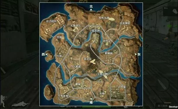 首先,我们单单从地图上看一些建筑较为密集的区域,例如“极光镇”“盘龙基地”“麒麟镇”“椰城”以及“边贸城”这几个地方。
