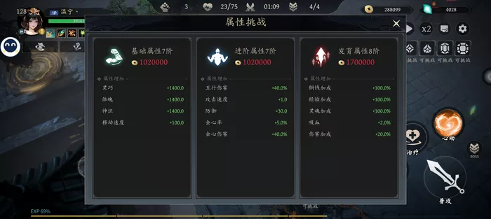接下来找最终的毕业技能了也就是技能商店最贵的那俩小子(我个人大概不会用中级技能都是初级直接找高级毕业) 技能推荐就在上边,一样刷属性刷资源,开始为通关做准备了,比较顺的兄弟这个时候可行开始最终的准备,就是技能升级