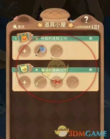 2、接下来在道具小屋内,点击猫酱的道具,继续点击下方的加号;