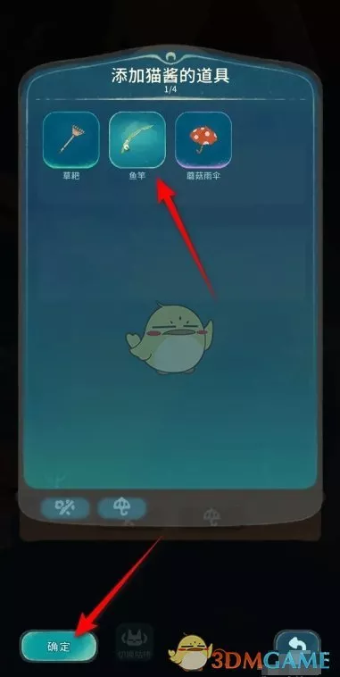 3、接下来在添加猫酱的道具中,选择鱼竿进行添加;