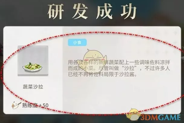 4、等待研发完成后,就能够拿到蔬菜沙拉这个菜品;