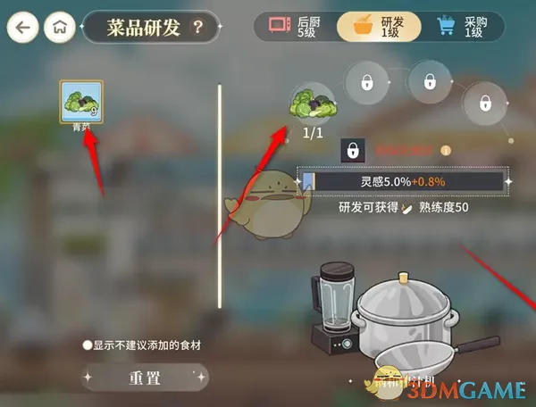 3、紧接着在菜品研发中,使用锅和榨汁机,使用青菜进行研发;