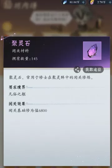 此外就需要购买聚灵石,这对于众多玩家来说是比较关键的物品,玩家需要在洞府当中去面对各种敌人,通过这种物品可行增强自动吐纳灵气的速度,能让自己的战斗实力变得更强。只有让自己的灵气变得更多,那么才能迅速完成修仙的愿望,成为真正的道士。