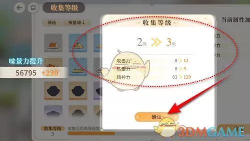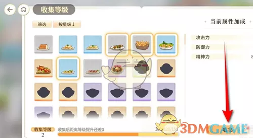 5、最后我们点击收集,即可领取到菜品收集的奖励,同时增强各方面属性;