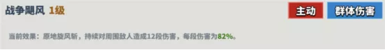 描述:原地旋风斩,持续对周围敌人造成12段伤害,每段伤害为82%。