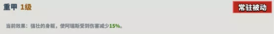 描述:强壮的身躯,使阿瑞斯受到伤害减少15%。