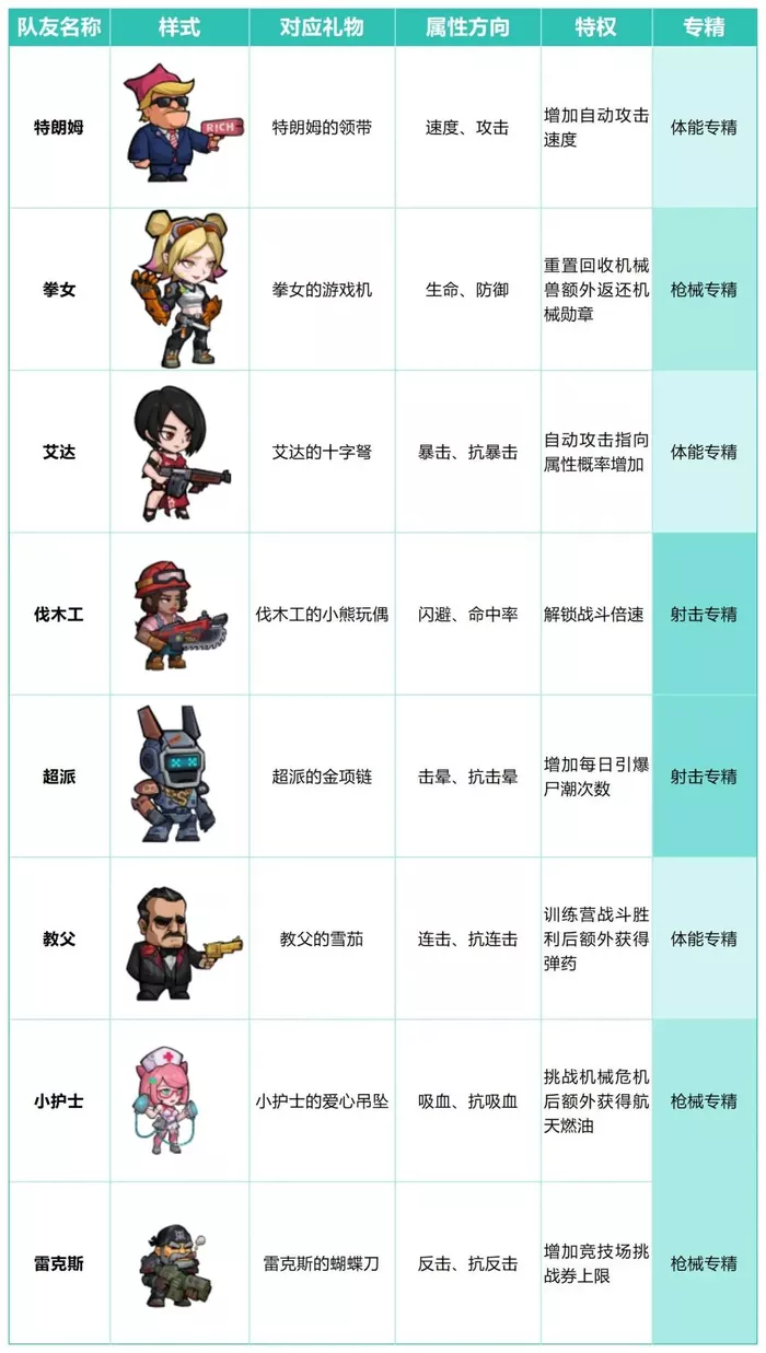 除了属性和特权的增强,每个队友都有他对应的专精,关于这个部分,我们先暂时按下不表,一会再给大家细细道来。