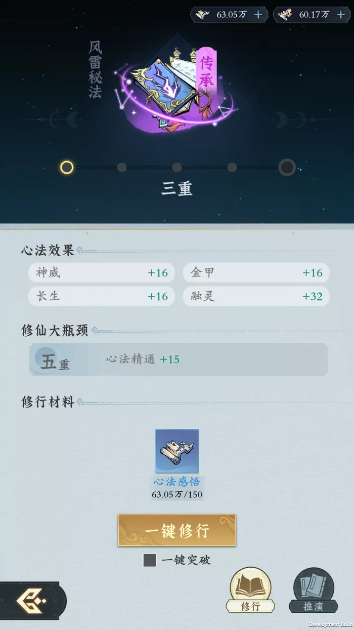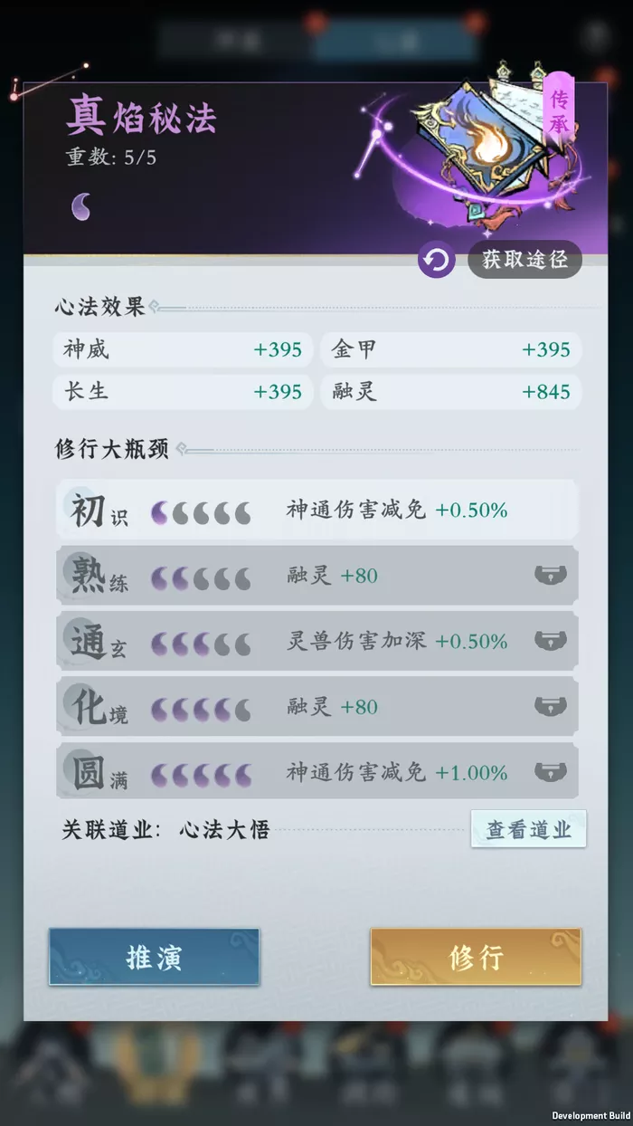 3.感悟:推演和养成所利用的心法真意、心法精义和心法感悟,都能够通过感悟取得。