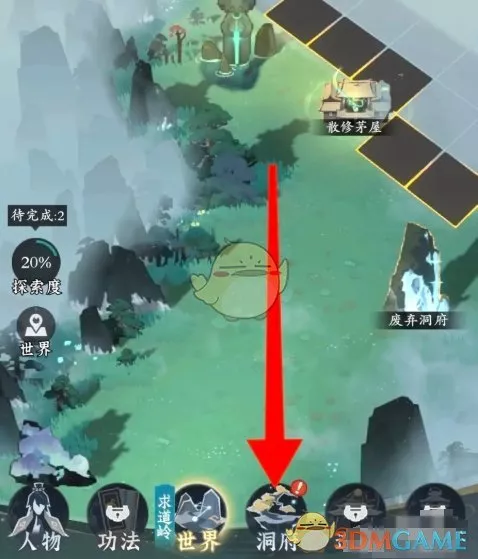 1、首先我们点击游戏主页下方的洞府功能前往;