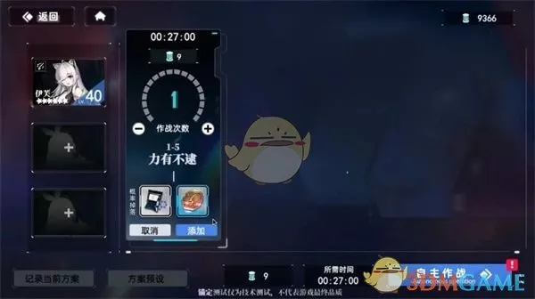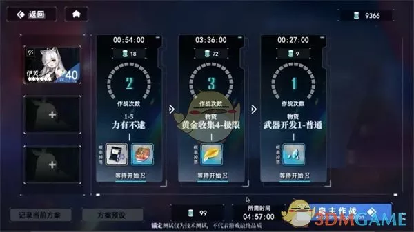 2、自主作战能够同时开启多个关卡,只要在体力范围内和24h总时长限制内。