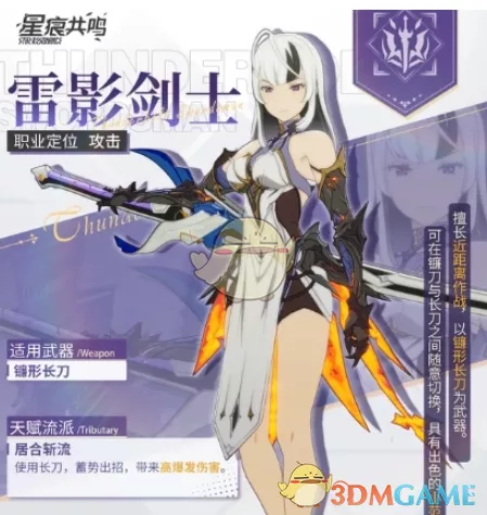 作为一个专注于攻击的角色,在中短距离作战环境中发挥出极高的伤害输出能力,该职业适用的武器是镰形长刀,能够很好地配合雷影剑士快速移动的特点来发动连续不断的攻击,对于天赋流派的选取上,居合斩流是一个相当受欢迎的选项,通过运用长刀进行蓄势待发后瞬间释放的强大技能,允许让雷影剑士在短时间内造成巨大的爆发性伤害,而月刃召唤流则侧重于解放镰刀的力量,以极快的速度连续发出多次攻击,形成一片密集的刀光剑影区域,给敌人带来持续的压力同时也为自己创造更多机会去战胜对手。