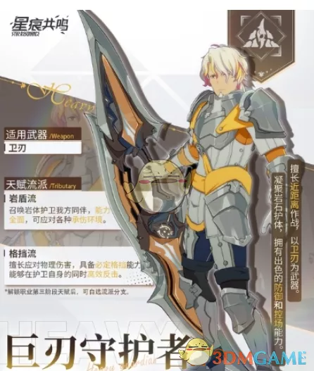 作为守护型职业,适合运用的武器是卫刃,这种武器不仅能够给予强大的防御能力,还能通过天赋流派的选取进一步增强其功能性,对于巨刃守护者来说,岩盾流是一个不错的选取,这个流派允许让角色召唤出坚固的岩石屏障来保护盟友,无论是面对远程还是近战的敌人都能有效地减少受到的伤害,此外岩盾流还给予了一定的控制效果,比如减速或定身,使得敌人更难接近己方的核心成员,另一个可选的流派是格挡流,专注于提高自身的物理防御力,并且拥有必定成功格挡特定类型攻击的能力,相当适合那些想要成为队伍带来盾牌效果的玩家。